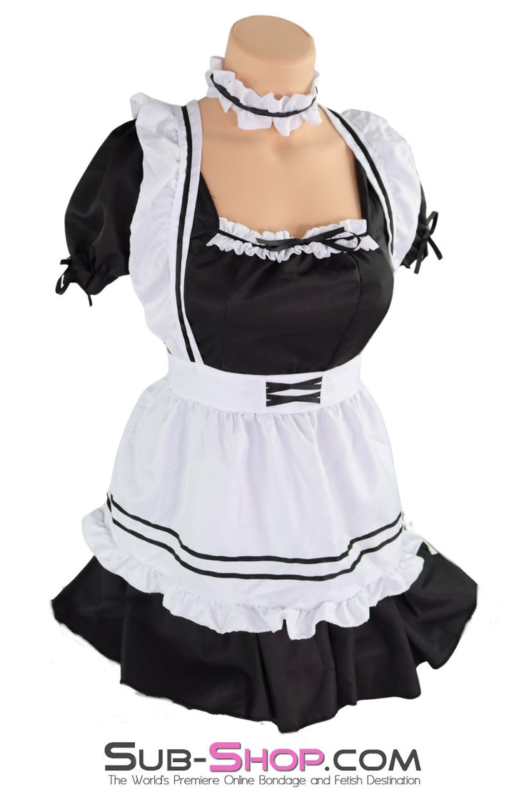 0979AE Full-Service French Maid Uniform Ruffled Dress with Matching Thigh Garters, Cuffs & Headband