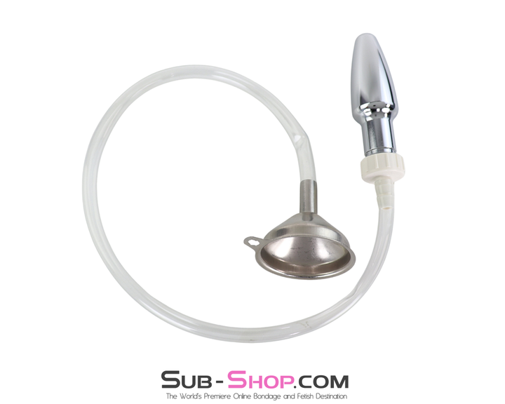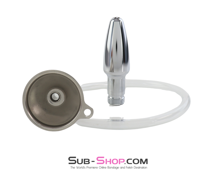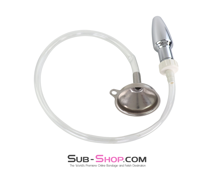 0519M Steel Enema Butt Plug with Hose and Funnel Tip