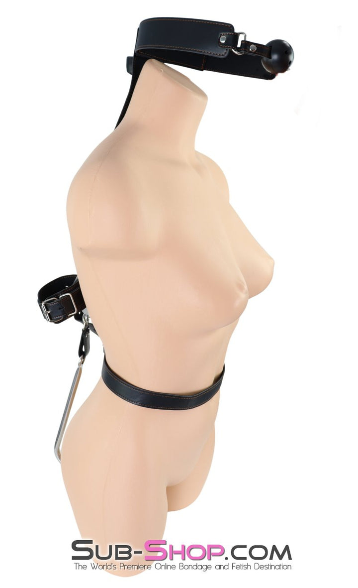 1696DL Steel Anal Hook Bondage Set - Waist Belt, Elbow Cuffs, and Ball Gag Harness