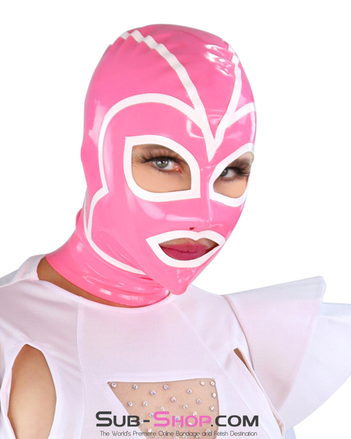 pink latex hood, latex mask, sensory play hood, fetish hood, bdsm mask, latex bondage hood, cosplay hood, roleplay mask, latex full hood, white trim hood, unisex latex hood, tight fit hood, latex headgear, bdsm fashion, statement hood, fetish fashion, rubber hood, latex cosplay mask, alternative fashion, hood for sensory play, form-fitting latex, latex roleplay mask, sleek latex hood, erotic fashion, latex lovers hood, bdsm accessory, high-quality latex hood, mouth opening hood, eye opening hood, fetish cosplay, unisex bondage hood, latex play hood, stylish latex mask, latex kink hood, premium latex gear, cosplay accessory, statement latex piece, bold fashion mask, latex head covering, roleplay gear