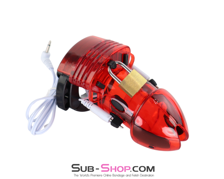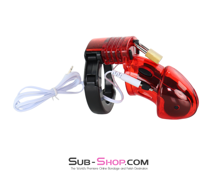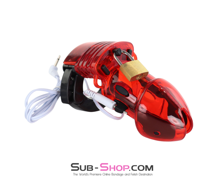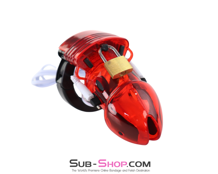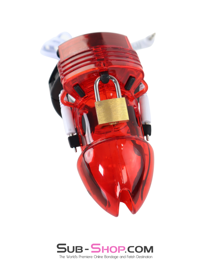 6935AR Electro Male Locking Electric Chastity Cage with Spacers and E-Stim Cable, Red