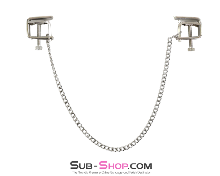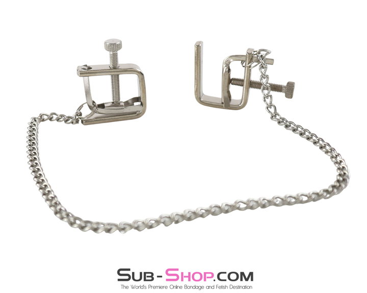 Get just the right squeeze and make your nipples perk up with pleasure with these gorgeous Nipple Presses Chained Flat Nipple Clamps! These classic metal nipple presses feature adjustable vise-screws that gently apply pressure to your nipples, keeping them erect and increasing nipple sensitivity.
