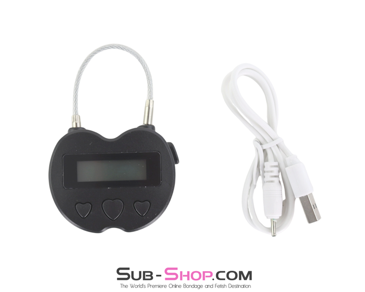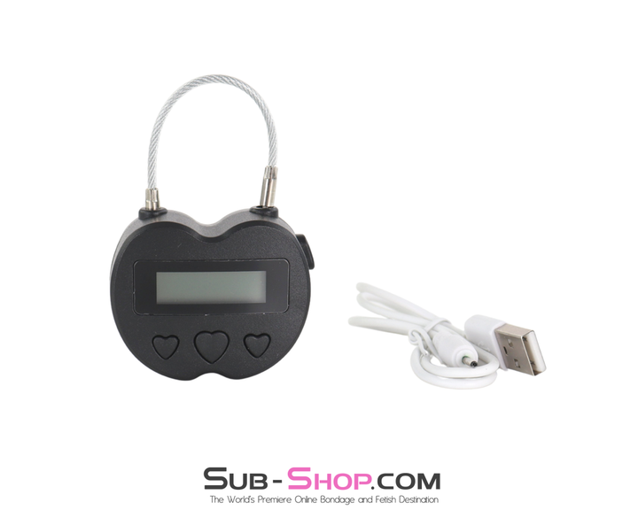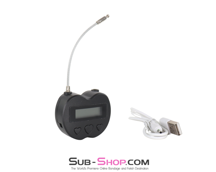 Give your naughty side the time out you deserve with our Sissy Boi Heart Shaped Time Lock Accessory USB Rechargeable Lock, The Forced Feminization Fantasy Female Domination Ultimate Self Bondage Lock. This lock will ensure you'll serve your lock up time!