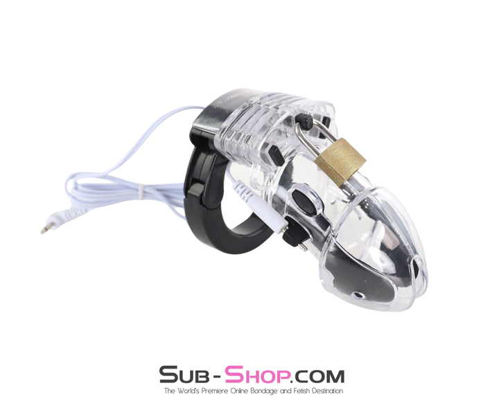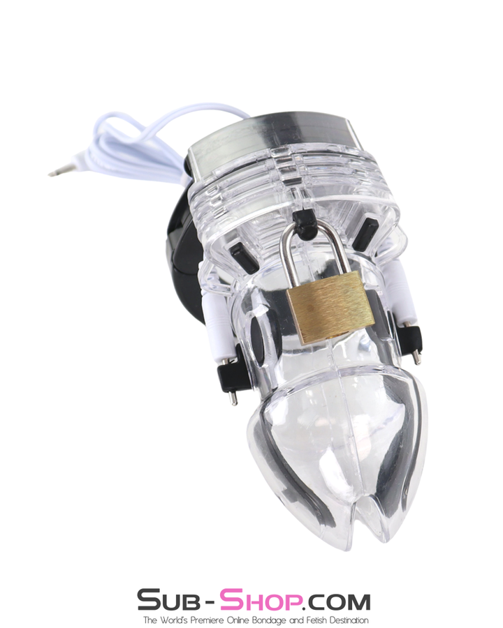 7247AR-SIS Sissy Clit Trainer Electro Stim Clear Polycarbonate Locking Cock Cage Chastity Device