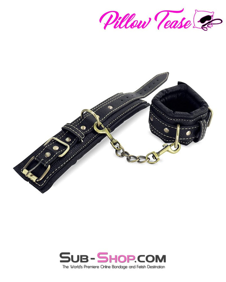 Deliciously decadent, these cuffs wrap around your wrists tightly, but super-comfortably, trapping your wrists in their sexy embrace. When you're looking for the perfect pair, you can't go wrong with our Thick Padded Wrist Bondage Cuffs with Brass Tone Hardware!
